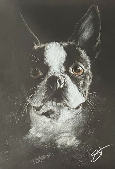 Dramatic black and white portraits that capture the soul of your beloved pet. You don’t just get a print—you get the original hand-drawn artwork to treasure forever.